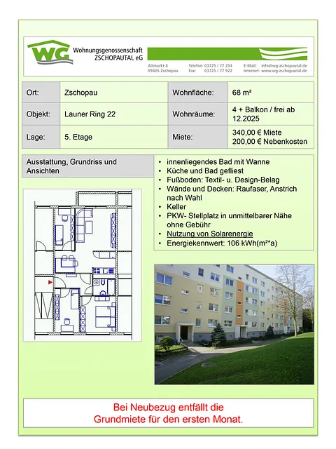 Mieten Sie unser Wohnnung zum Neubezug an: